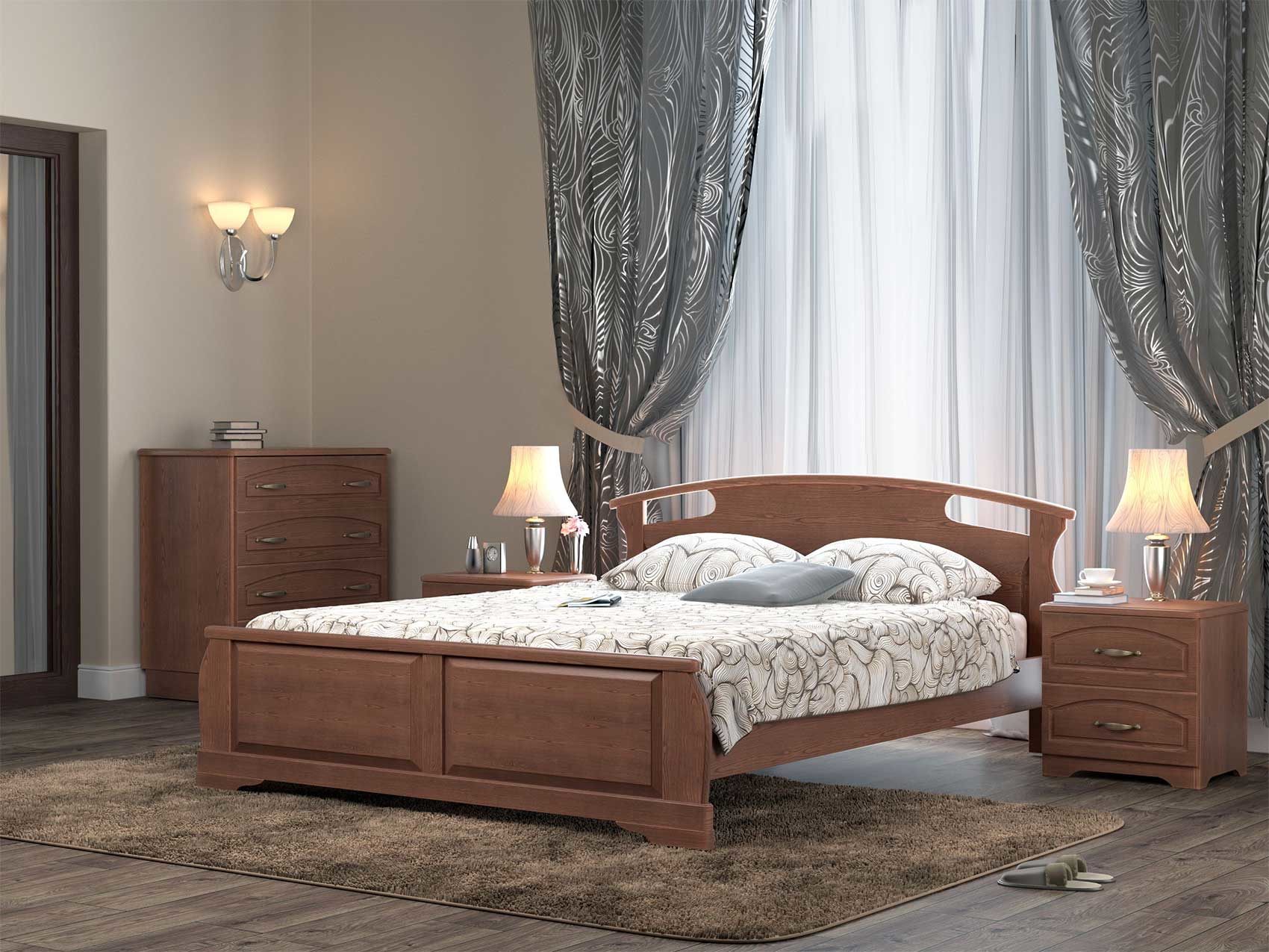 Двуспальная шикарная кровать Афродита 1 из массива ясеня с низким изножьем - это лучший выбор для Вас и Вашей семьи. Сложные гнуто-клееные элементы декора кровати, превосходно впишутся в любой интерьер. Кровать из массива ценной породы дерева – ясеня - гарантия экологической чистоты в Вашем доме. Такие кровати отличаются долговечностью и надежностью. Вся мебель покрывается высококачественным полиуретановым лаком (Испания), что защищает поверхность от царапин и прочих повреждений.