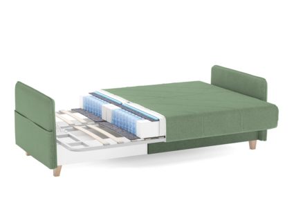 Диван для сна в скандинавском стиле с механизмом трансформации «клик-кляк» и коробом для хранения. Основание дивана металлическое, с ламелями. Матрас анатомический с независимым пружинным блоком. Благодаря съемному чехлу с объемной стежкой в форме ромбов, диван органично впишется в современные интерьеры в скандинавском стиле и стиле минимализм.