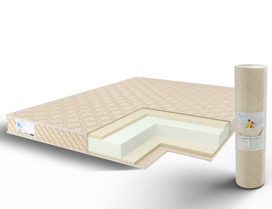 Несмотря на свою небольшую высоту в 14 см матрас выдерживает нагрузку до 120 кг на спальное место. Это стало возможно благодаря беспружинному составу и качественным наполнителям. Внутри матраса расположился натуральный латекс у поверхностей и ортопедическая пена в центре.