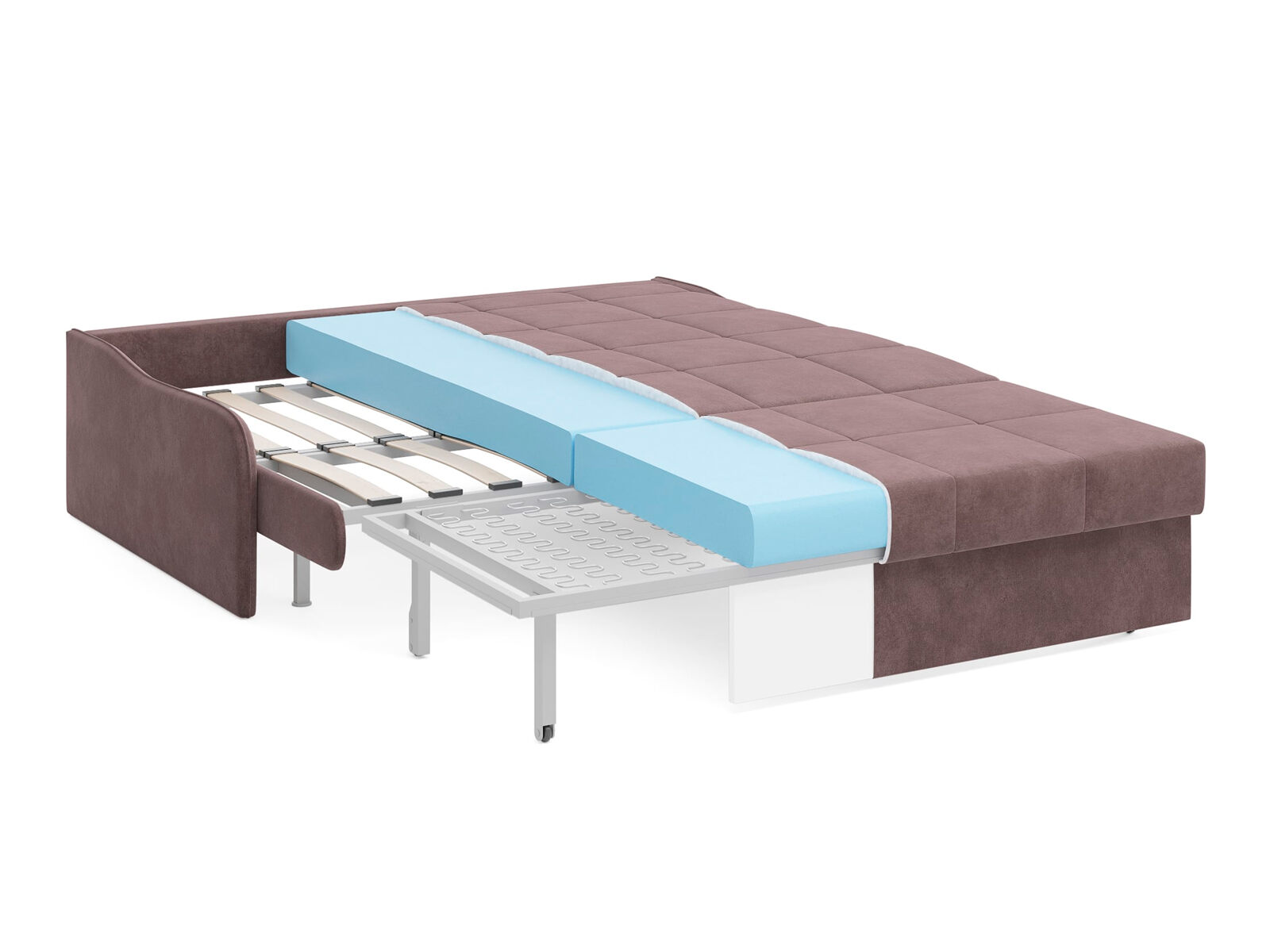 Диван-кровать Glen для сна в современном стиле, с механизмом трансформации аккордеон и беспружинным анатомическим матрасом. Металлический каркас с деревянными ламелями обеспечивает ровную поверхность, как на кровати. Матрас анатомический средней жесткости из высокоэластичной пены Foam обеспечит правильное положение во время сна. Чехол с объемной стежкой в форме квадратов делает диван универсальным для современных интерьеров и интерьеров в стиле минимализм. Благодаря лаконичным узким и низким подлокотникам, механизму разложения диван имеет минимальные габариты в ширину как в сложенном, так и разложенном виде. У Glen два положения трансформации - диван с комфортной посадкой и кровать с полноценным анатомическим матрасом.