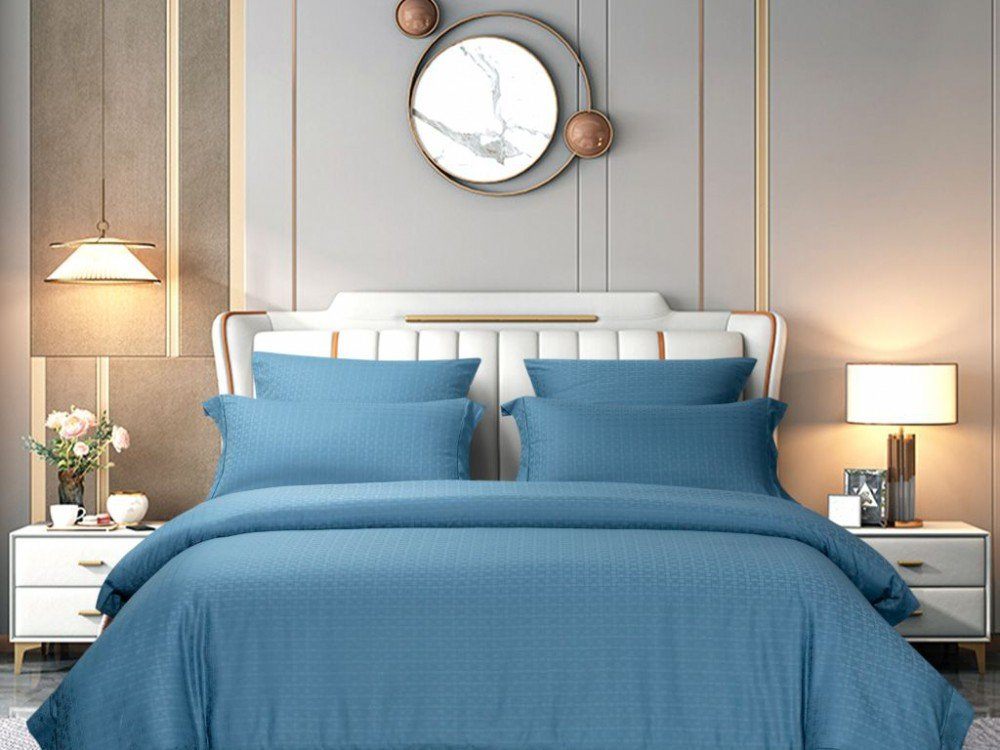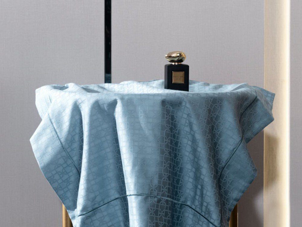 Новая серия из хлопкового жаккарда выполнена из прочной ткани с благородным блеском в цвете морской лагуны. Лаконичный рисунок ткани будет уместно смотреться как в классическом интерьере, так и в минимализме.