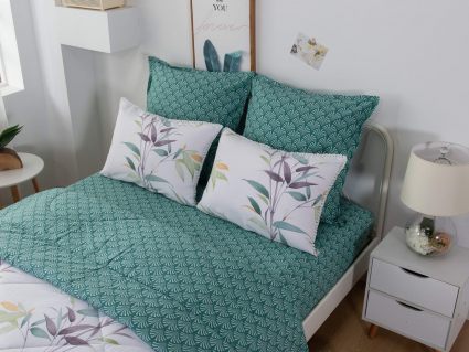 В комплекты комфортеров с одеялом Бернадетт входят наволочки, простыня и легкое всесезонное одеяло. Оцените это современное и очень удобное решение, которое идеально подходит тем, кто не любит возиться с пододеяльниками.
