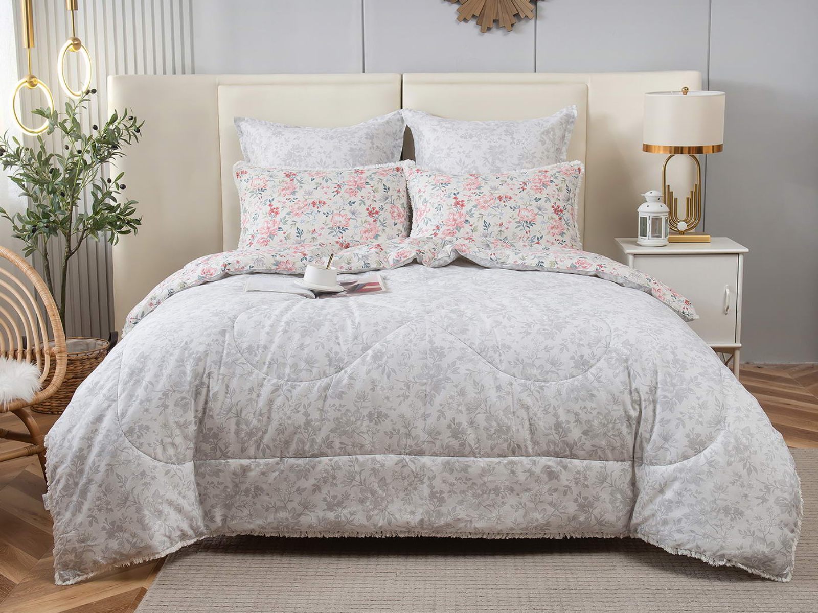 В комплекты комфортеров с одеялом Бернадетт входят наволочки, простыня и легкое всесезонное одеяло. Оцените это современное и очень удобное решение, которое идеально подходит тем, кто не любит возиться с пододеяльниками.