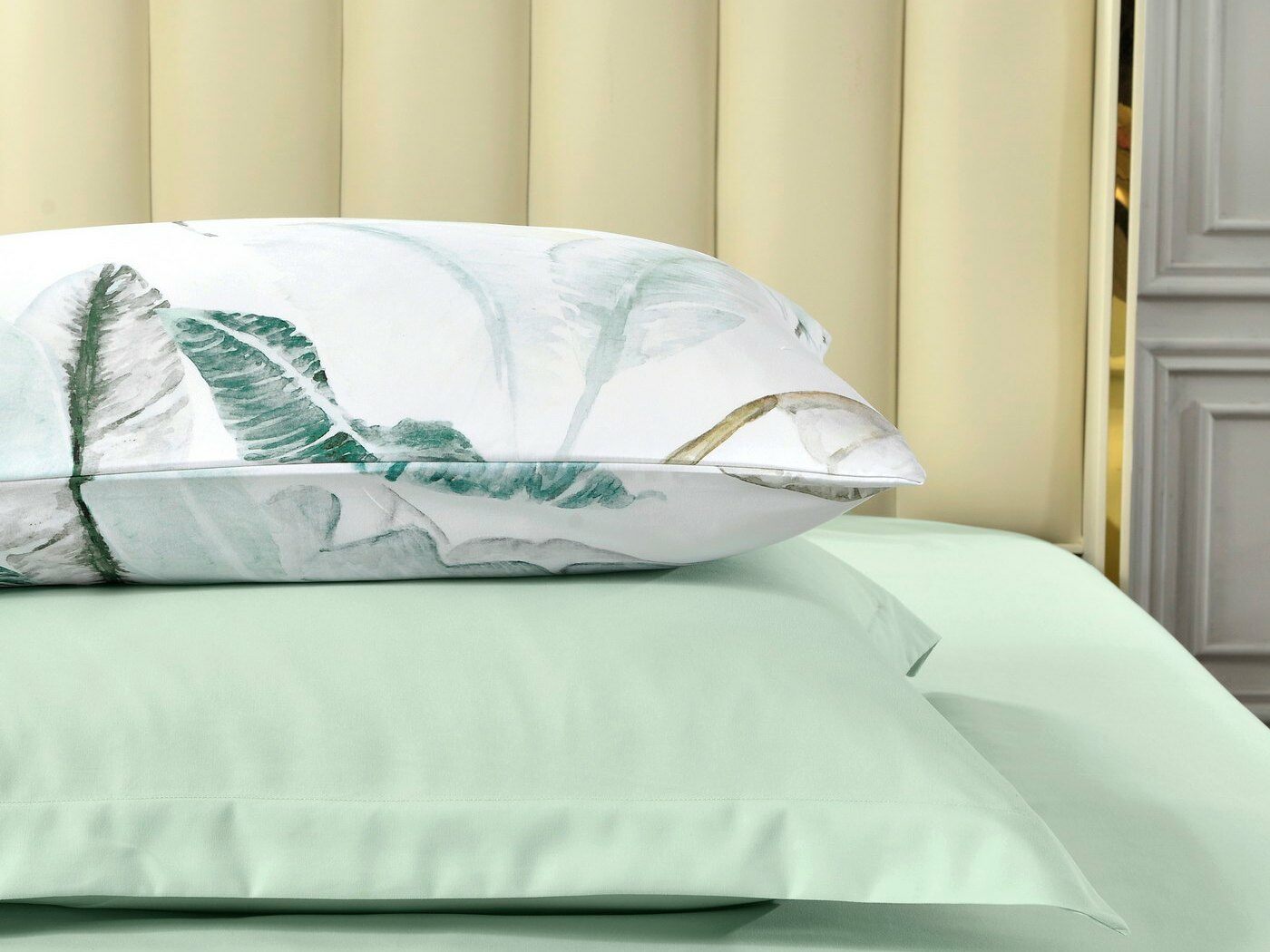 Наволочки 70х70см изготовлены из однотонной ткани, пошив с ушками.