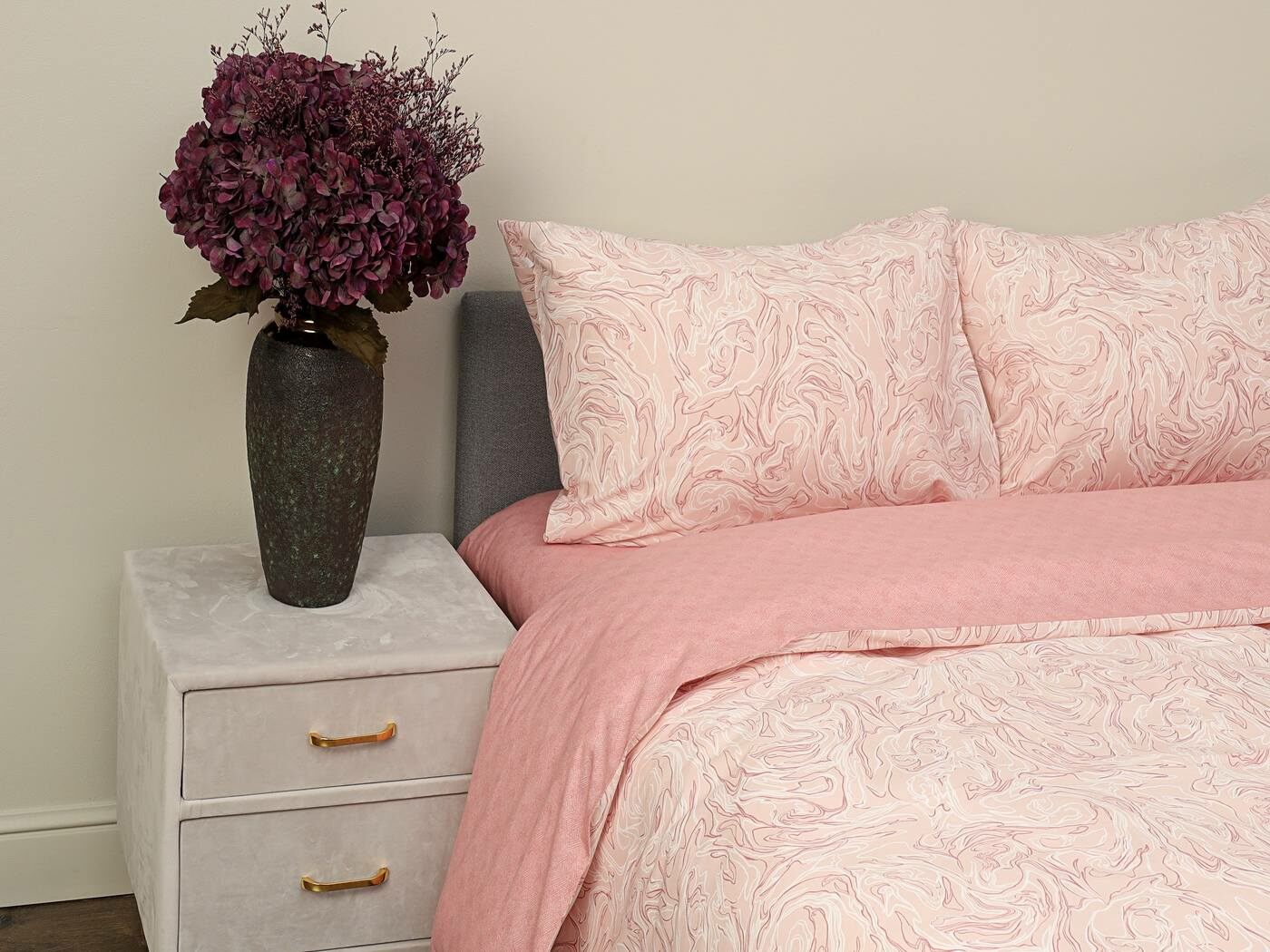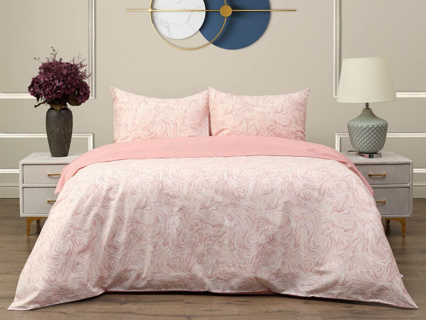 Комплект Мэгги легко стирается в обычной машине в бережном режиме и также легко гладится.