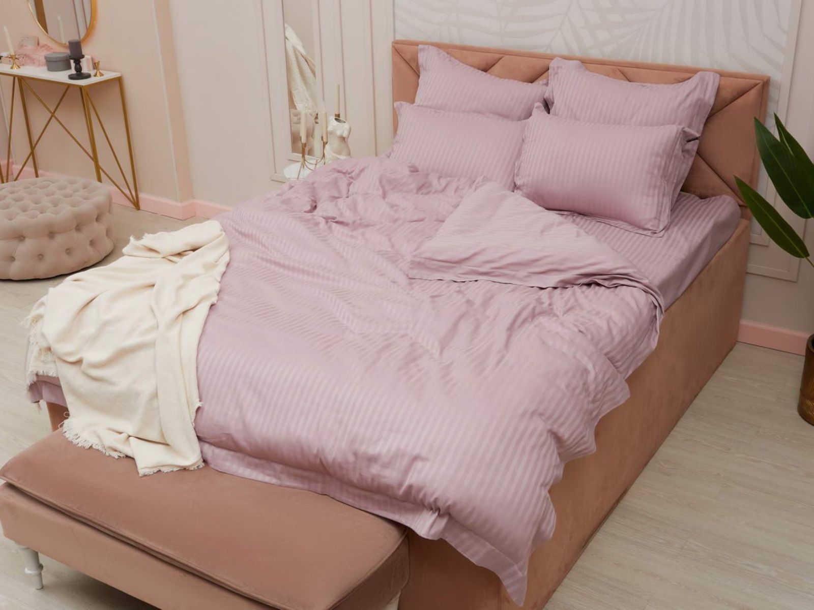 Постельное белье Моне, изготовленное из высококачественного страйп-сатина, станет украшением Вашей спальни. Комплекты представлены в 17 оттенках: от пастельных, до ярких насыщенных тонов. Такая палитра никого не оставит равнодушным. Особое плетение ткани образует узор в виде чередующихся полос, это придает постельному белью изысканность, гладкость и блеск.