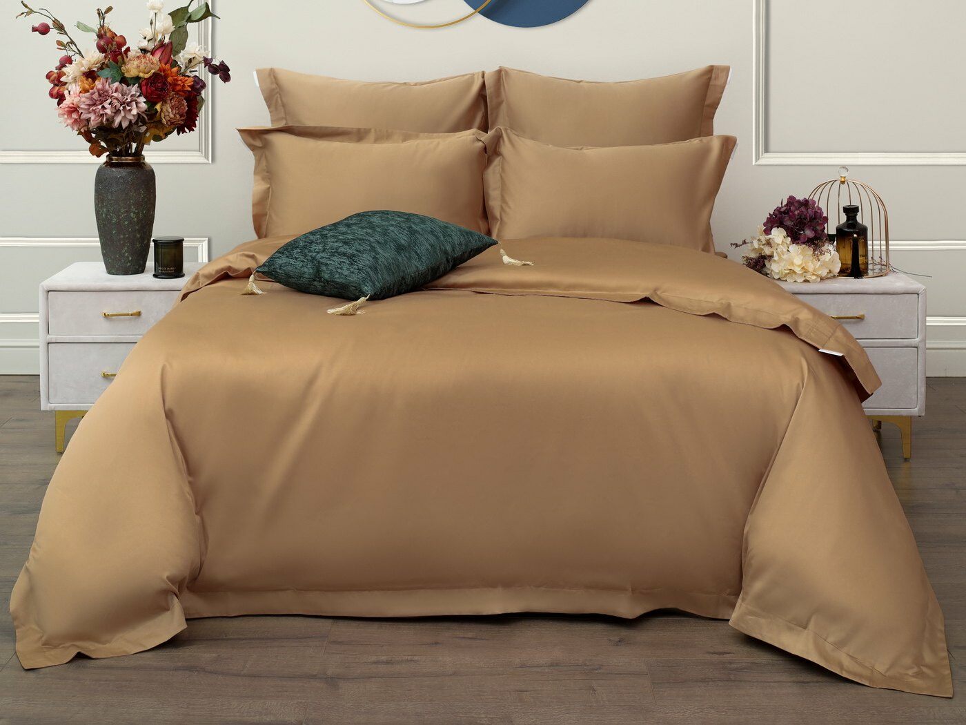 Натуральный состав из 100%-го хлопка обеспечивает гипоаллергенные свойства материала, он охлаждает в жаркую погоду и согревает в холодное время года. Мако-сатин плотностью 300ТС- является тканью класса люкс.