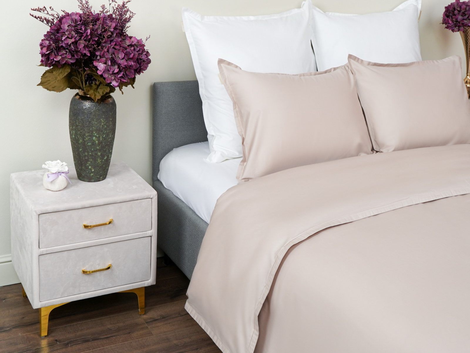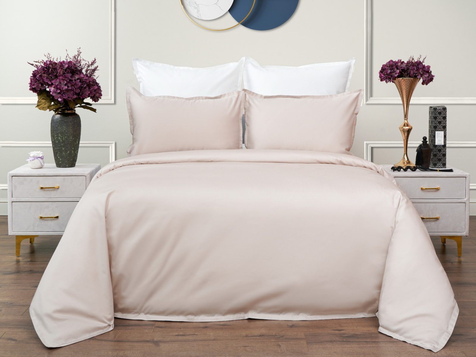 Особенность: наволочки и пододеяльник с ушками 2 см по периметру, пододеяльник на пуговицах;