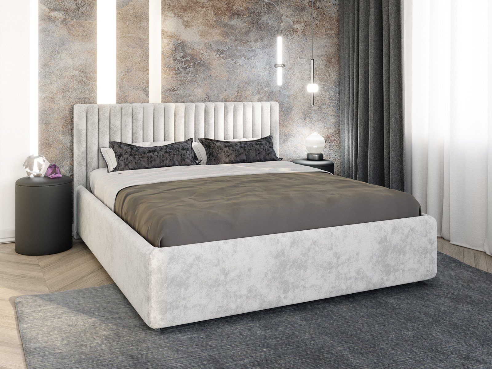 Кровать Fiore (Фиоре) с четкими параллельными утяжками (ширина утяжки всегда 10 см, независимо от размера спальго места) – красота, качество, комфорт! Сдержанная мягкая кровать Фиоре - идеальный выбор для Вашей спальни, оформленной в современном стиле.