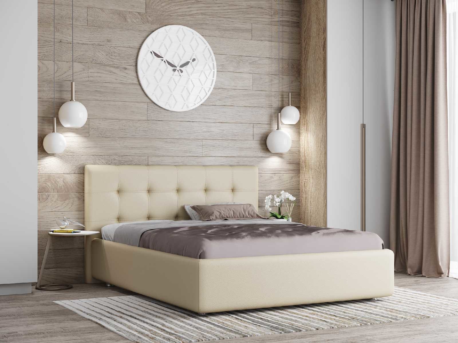 Компактная кровать «Сабина» с мягким изголовьем, декорированным стежкой «квадрат», идеальный вариант для интерьеров в современном стиле или малогабаритных квартир.
