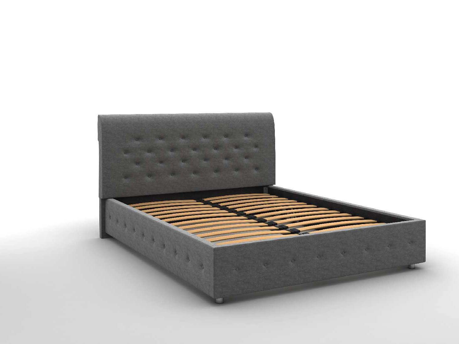 Кровать оснащена подъёмным механизмом. В такой вариации основание поднимается и открывает доступ к ящику для хранения белья и других вещей. Такая система может заменить небольшой шкаф и решить вопрос с организацией пространства.