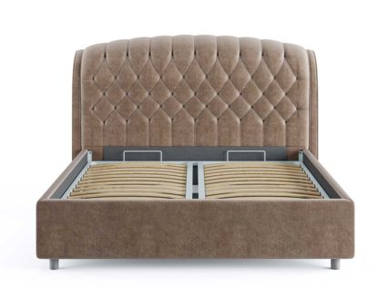Кровать комплектуется металлическим основанием и подъемным механизмом со вместительным бельевым ящиком. Дно бельевого ящика легко сдвигается для обеспечения уборки под кроватью.