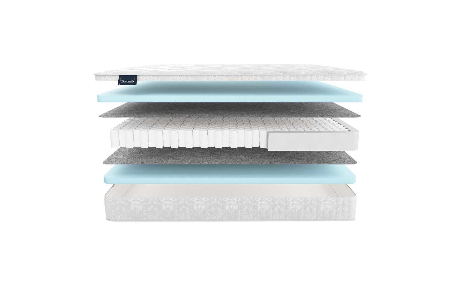 Для дополнительного комфорта матрас усилен каркасом 10 см по периметру, что дает ряд дополнительных преимуществ: он прекрасно держит вес, хорошо восстанавливается после нагрузки, а срок его службы становится больше.