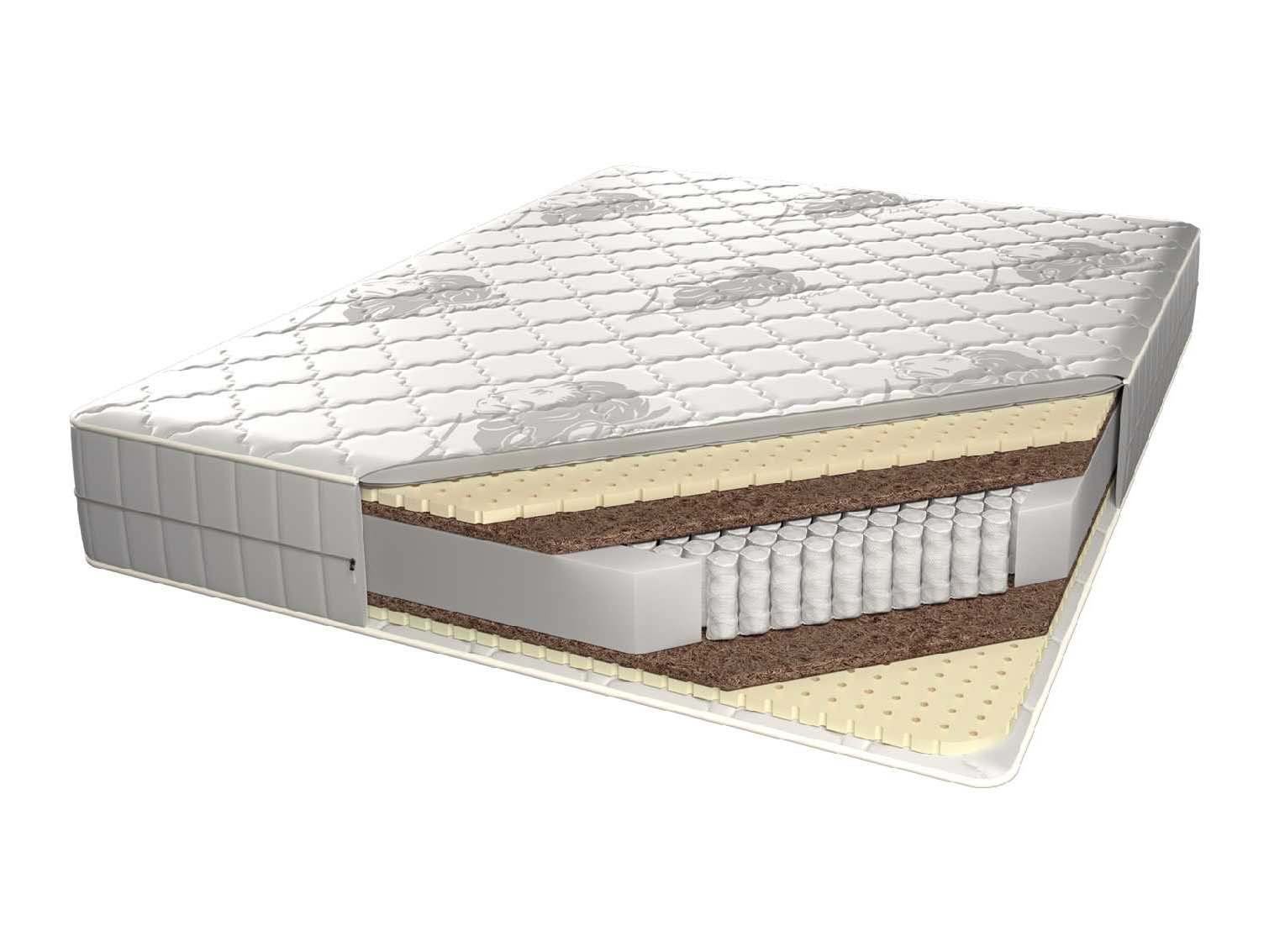 Матрас Париж классической средней жёсткости сочетает в себе достоинства натурального латекса, экологичной кокосовой койры и ортопедического блока независимых пружин.