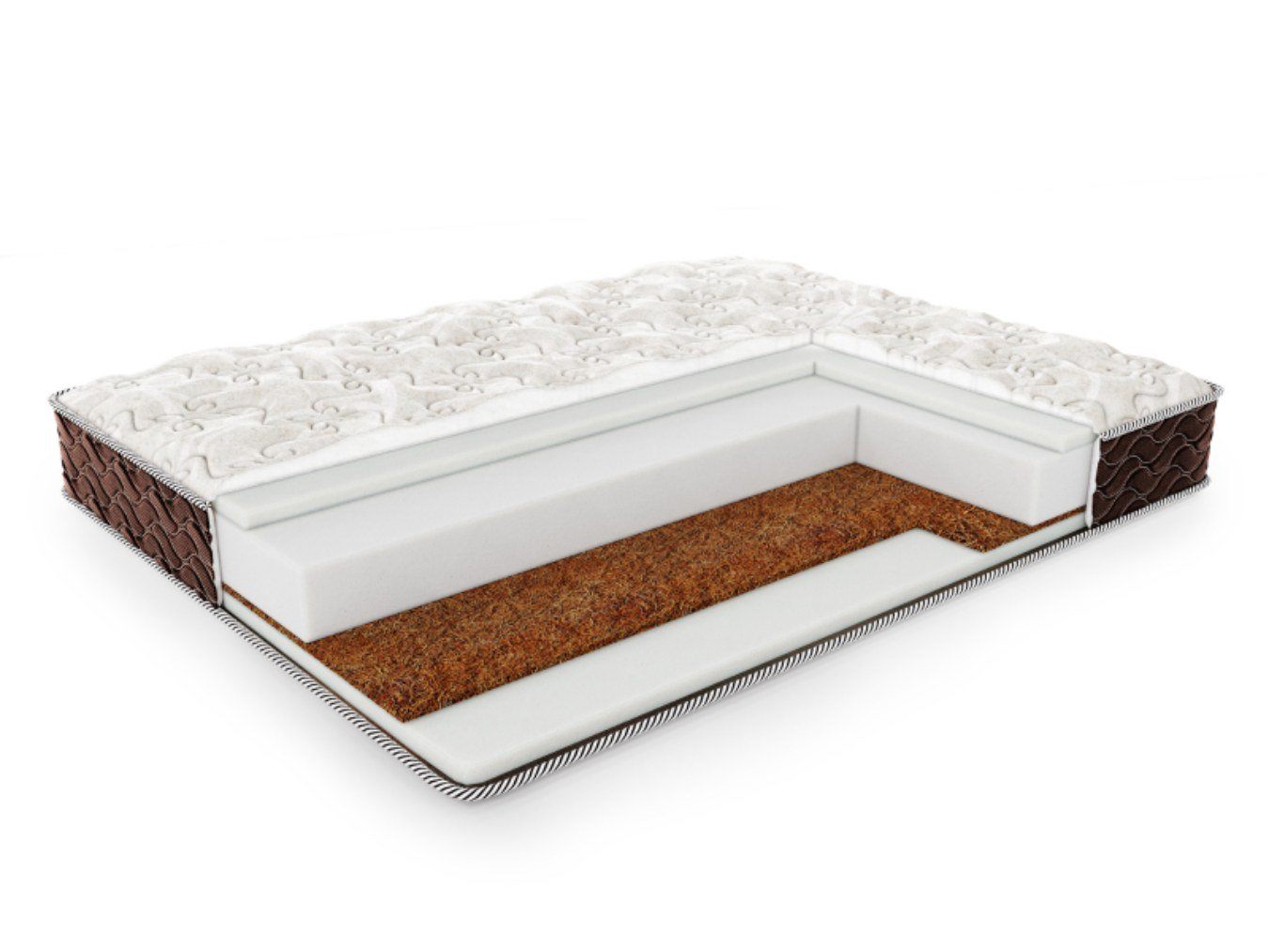 Кокосовая койра – очень жёсткий слой, который при этом очень гибок и адаптивен. Материал великолепно поддерживает спину, естественно дублируя все её линии. По этой причине материал относится к числу ортопедических.