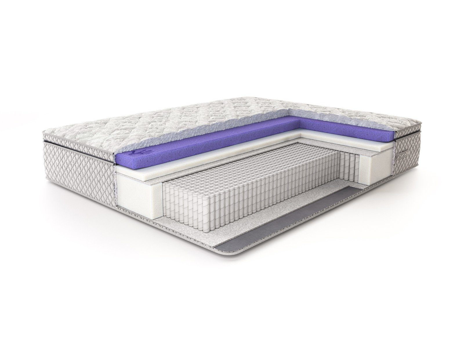 Роскошный рельефный чехол из жаккарда, простёганный по типу «слоёный пирог»: объёмное гипоаллергенное волокно холлкон 300 гр., ППУ 1 см, спанбонд — максимальный первоначальный комфорт. Чехол матраса несъемный.