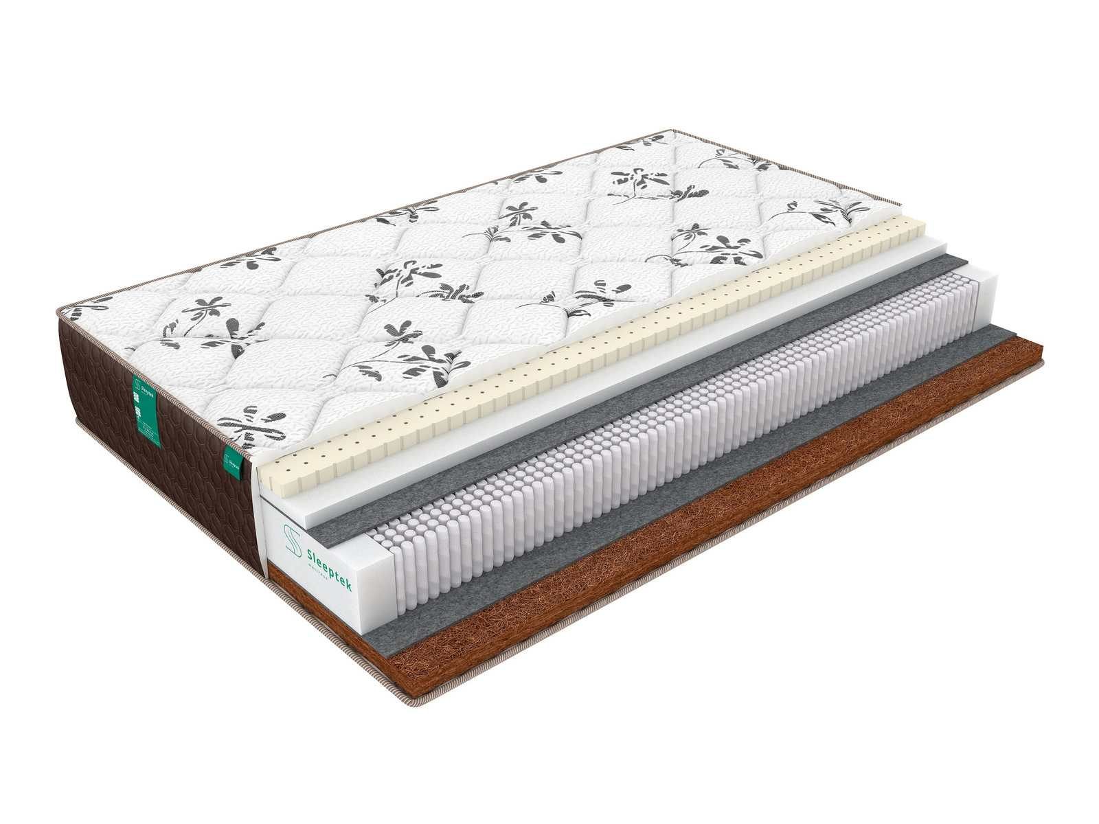 Двусторонняя модель Lux LatexNorma Cocos с различной жесткостью сторон – жесткая и умеренно-мягкая. Основой матраса служит блок независимых пружин класса «люкс» S2000. В таком блоке каждая пружина реагирует на прилагаемое усилие индивидуально, и благодаря этому весь матрас гибко подстраивается под контуры тела и вес. Точечная подстройка, в свою очередь, обеспечивает полноценную поддержку и способствует расслаблению.Блок пружин отделен от наполнителей слоями термовойлока,он защищает наполнители от контакта с пружинами и продлевает срок службы матраса.