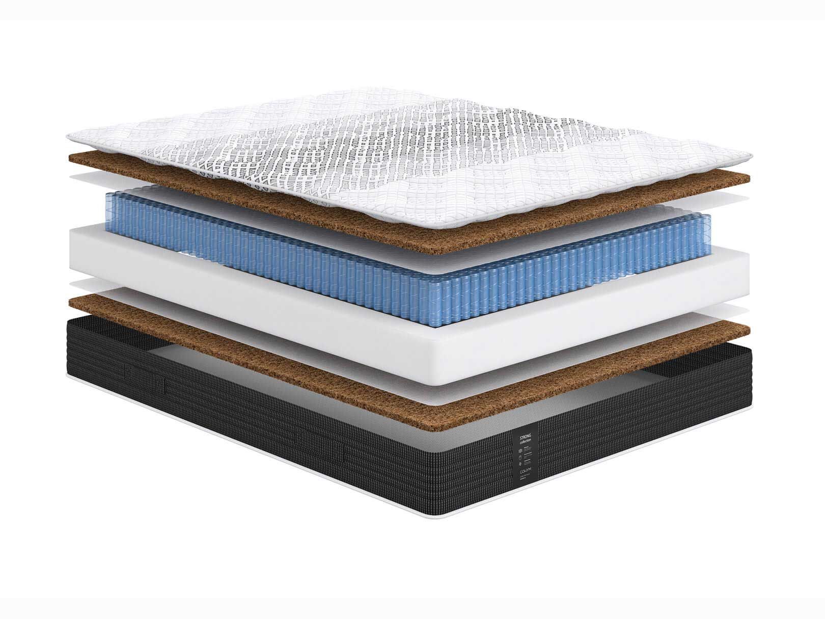 Кокосовая койра. Природный натуральный материал. Состоит из волокон ореха кокосовой пальмы, пропитанных составом из натурального латекса. Гипоалергенен, обеспечивает циркуляцию воздуха и теплообмен.
