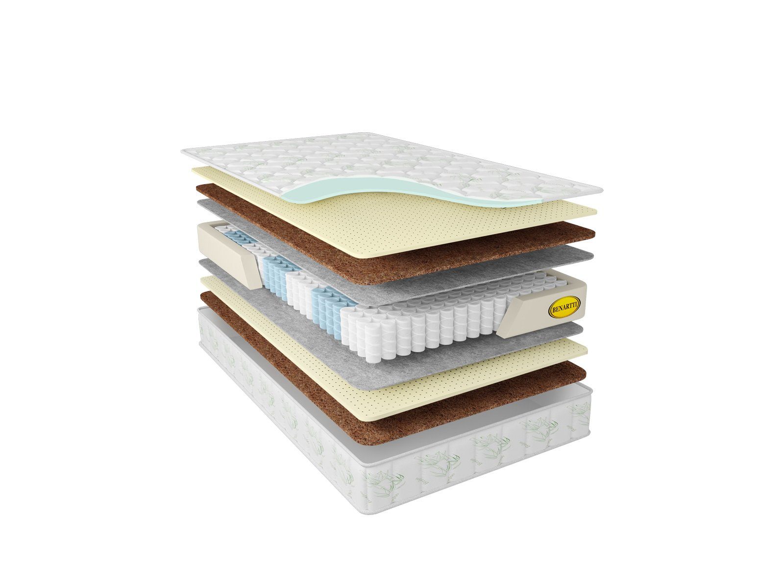 В качестве слоёв комфорта в матрасе выступают натуральный латекс и кокосовая койра. Они в разном порядке лежат у поверхностей, что даёт им среднюю и немного более высокую по жёсткости градации. Оба материала очень комфортны в использовании, они обладают собственным анатомическим и ортопедическим эффектом, хорошо пропускают воздух и служат многие годы без деформации поверхностей.