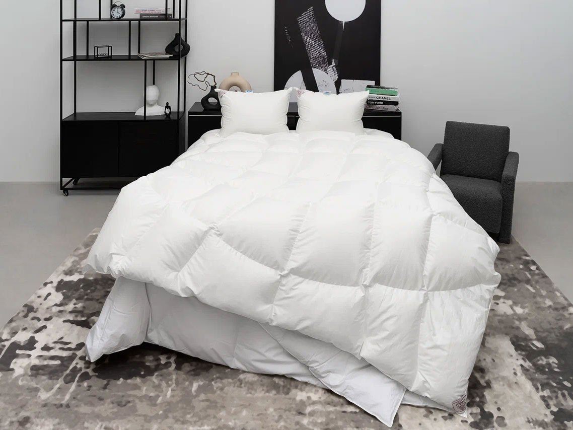 Технология BOX-QUILTING® позволяет создавать доступные по цене стеганные пуховые одеяла, которые по многим параметрам не уступают кассетным. Метод минимизирует миграцию наполнителя наружу, позволяя одеялу оставаться пышным весь срок эксплуатации и даже продлевает его, снижая износ ткани чехла. В товарах коллекции используются 100% гусиный пух категории "Экстра" и пуходержащий Сатин (Sateen Supersoft) нежного сливочного оттенка. Конструкция ткани - Nm124/133 TC 324, состоит из смеси нитей TENCEL® и длинноволокнистого хлопка. Подушки допускается стирать при температуре до 30°С. Для одеял рекомендована только сухая чистка.