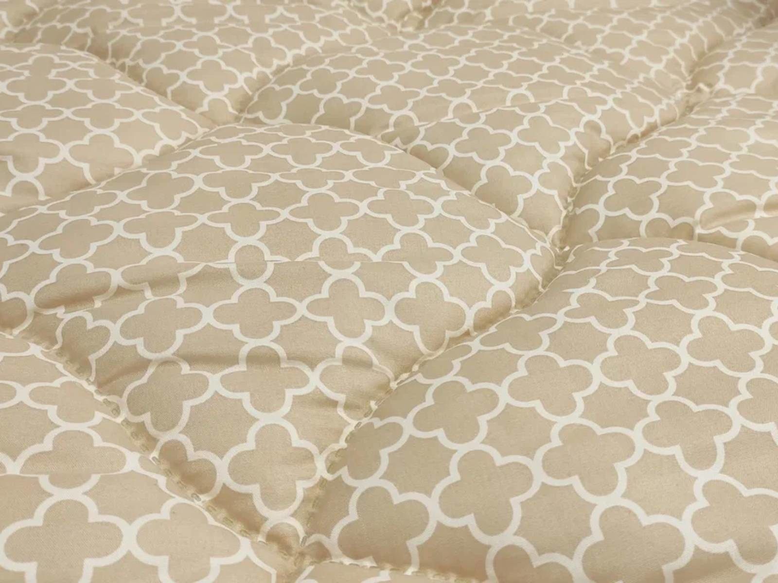 Чехол одеяла выполнен в спокойном бежевом оттенке с ненавязчивым геометрическим орнаментом. Ткань чехла обладает хорошей воздухопроницаемостью, отличается высокой прочностью и долговечностью. Уникальная технология безниточного скрепления Ультрастептм не только надежно фиксирует наполнитель внутри чехла, но и добавляет изделию объем.