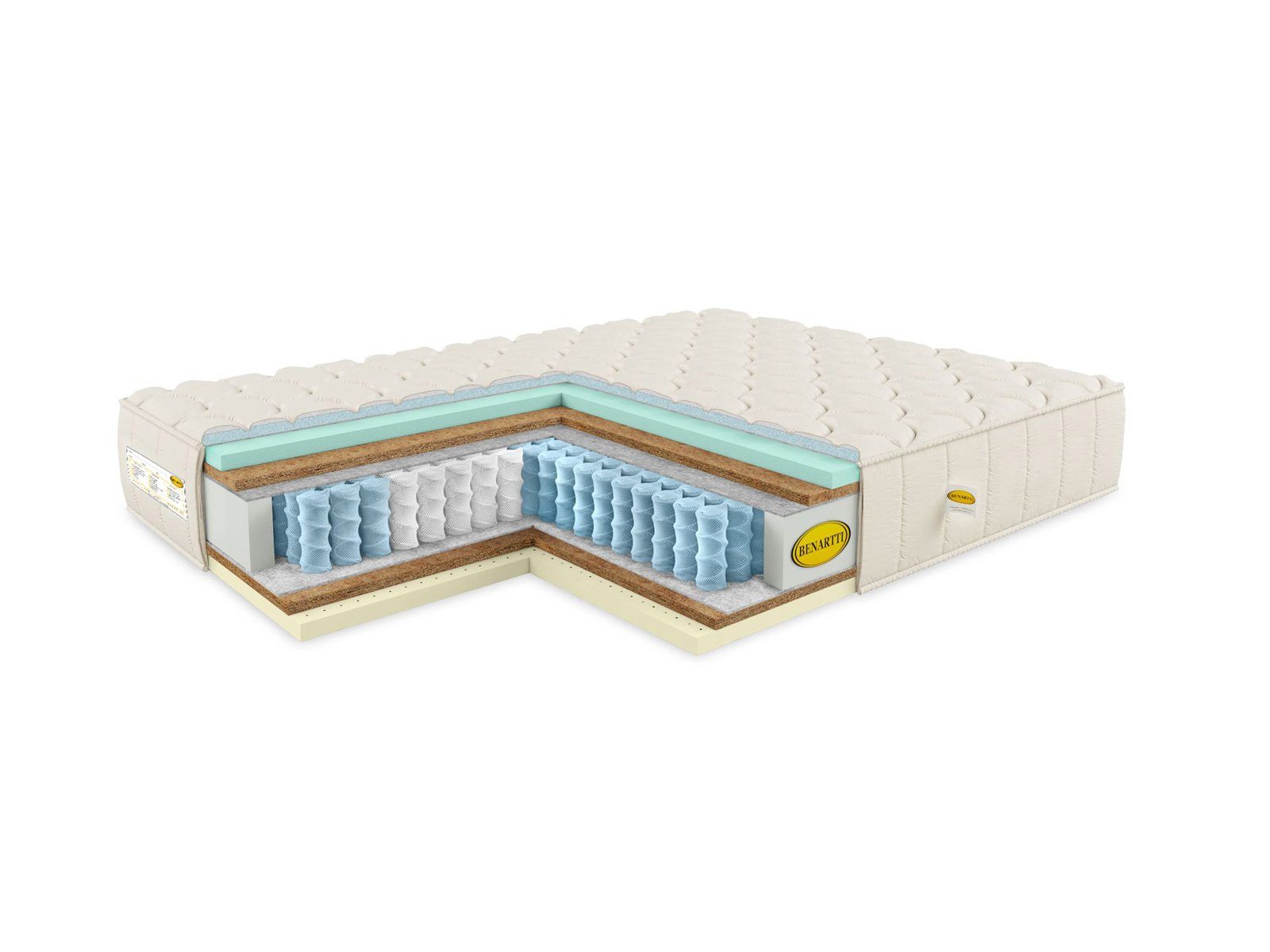 Каждая из поверхностей матраса представлена латексом и кокосовой койрой. Однако с одной поверхности установлен натуральный латекс, а с другой – искусственный. Синтетический аналог отличается большей жёсткостью. Однако оба варианта плиты оказывают приятную поддержку. Койра естественным образом продолжает работу пружин и усиливает ортопедический эффект своей равномерной поддержкой.