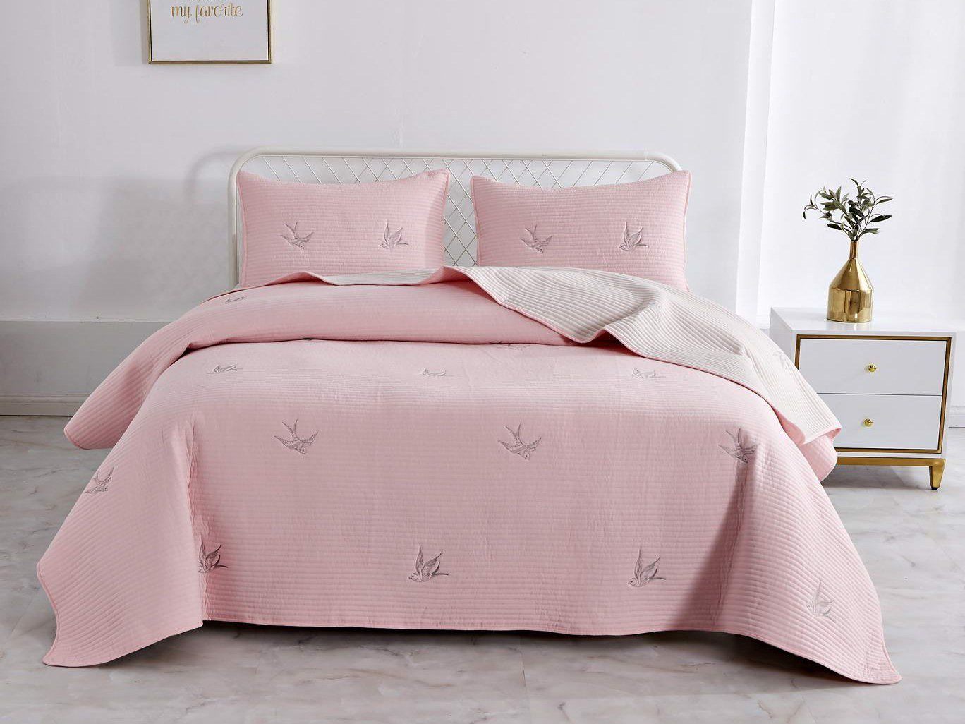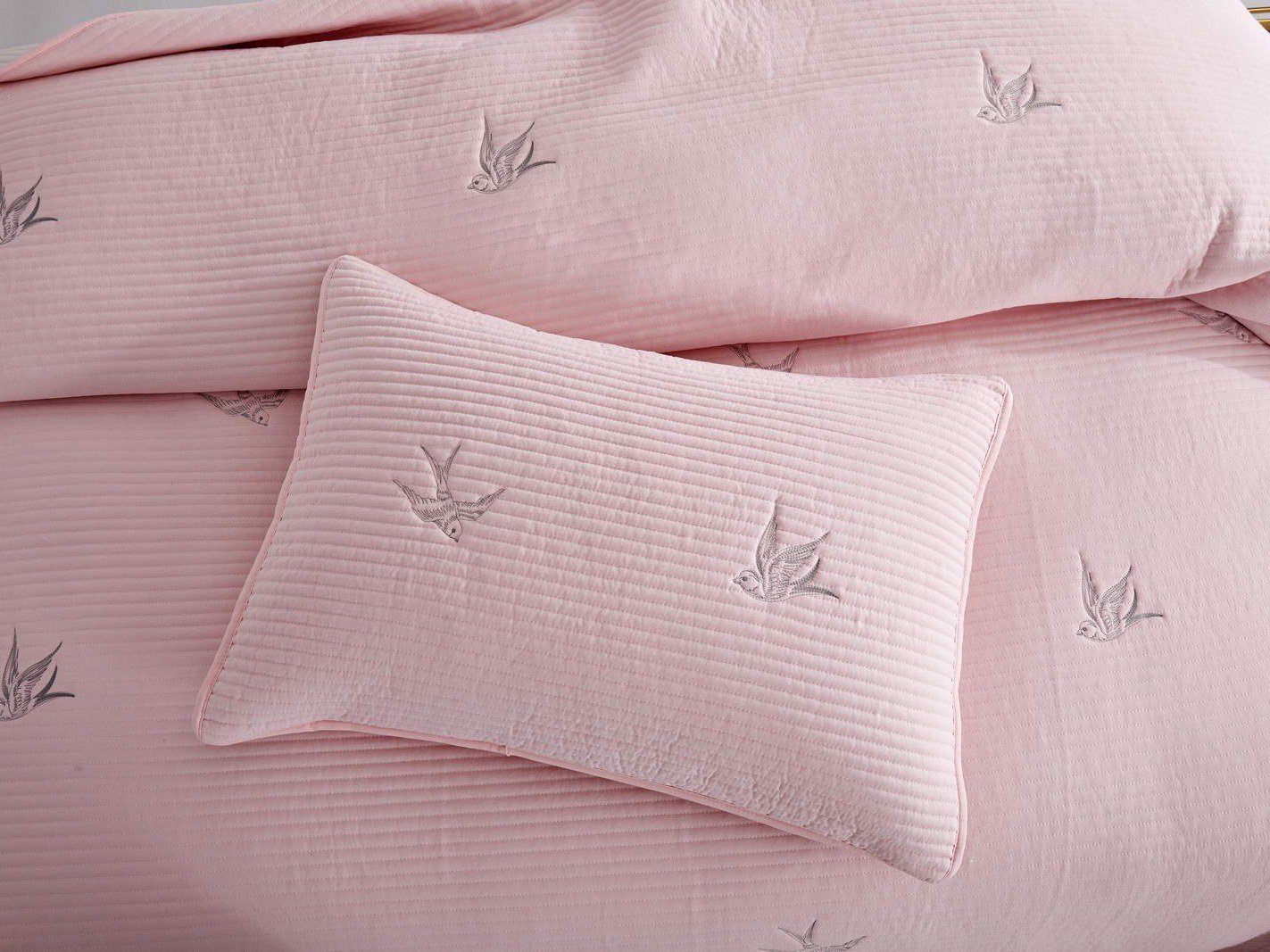 Покрывала этой коллекции выполнены из смеси хлопка и вискозы, используются только натуральные красители в пастельных тонах, тщательно продуманный рисунок напоминает о летнем небе и бескрайних полях южной Франции. Розовые или пудровые оттенки помогут создать романтичную атмосферу, более холодные хорошо подойдут для оформления мужской спальни.