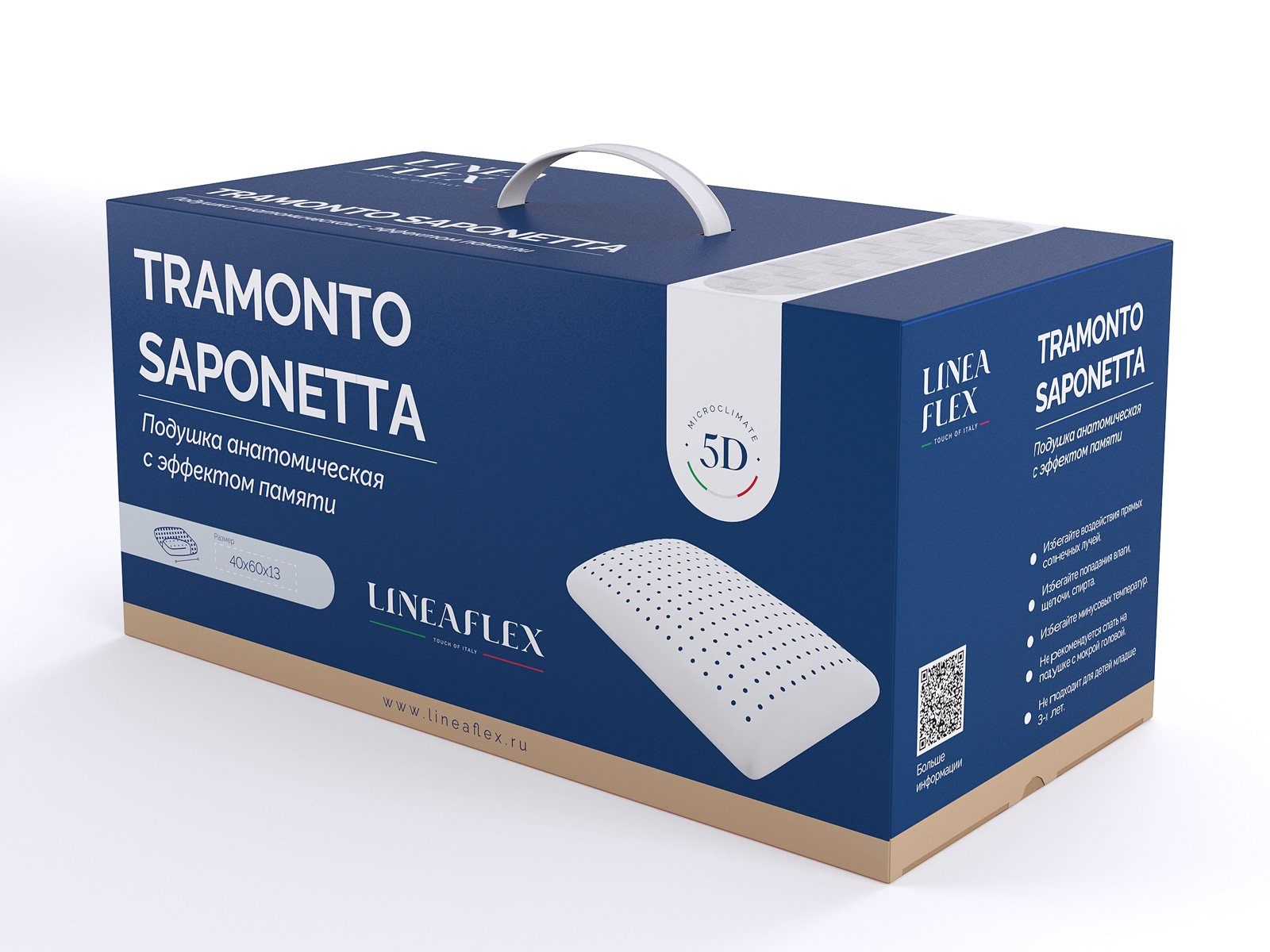 Tramonto Saponetta - анатомическая дышащая подушка с эффектом памяти. Классическая форма, оптимальная упругость - подходит для сна в любой позе.