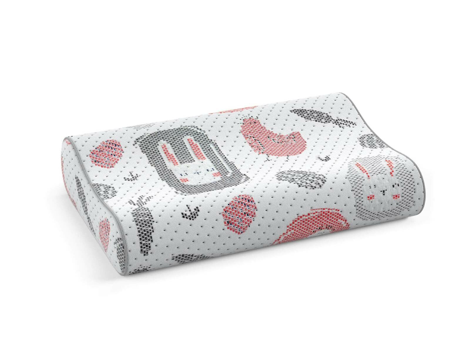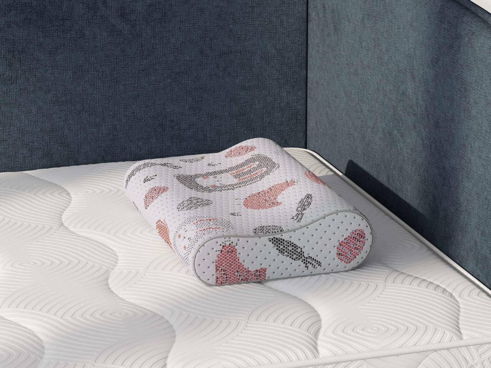 Подушка Emmy анатомической формы с подшейными валиками, для детей от 3-х лет. Валики разной высоты из пены memory обеспечивают комфорт и правильное положение грудного и шейного отдела позвоночника, что поможет предотвратить затекание мышц и быстрому восстановлению.