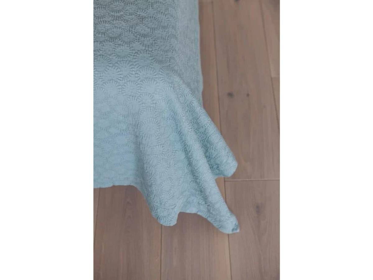 Покрывало практичное, не боится зацепок. Оно равномерно распределяется по поверхности кровати и не вытягивается. Приятное на ощупь благодаря технологии умягчения – stone washed.