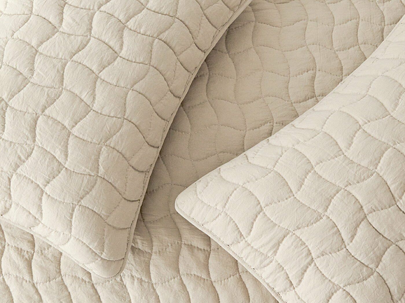 Покрывала и наволочки выполнены с кантом. Стежка двойной нитью под цвет покрывала.