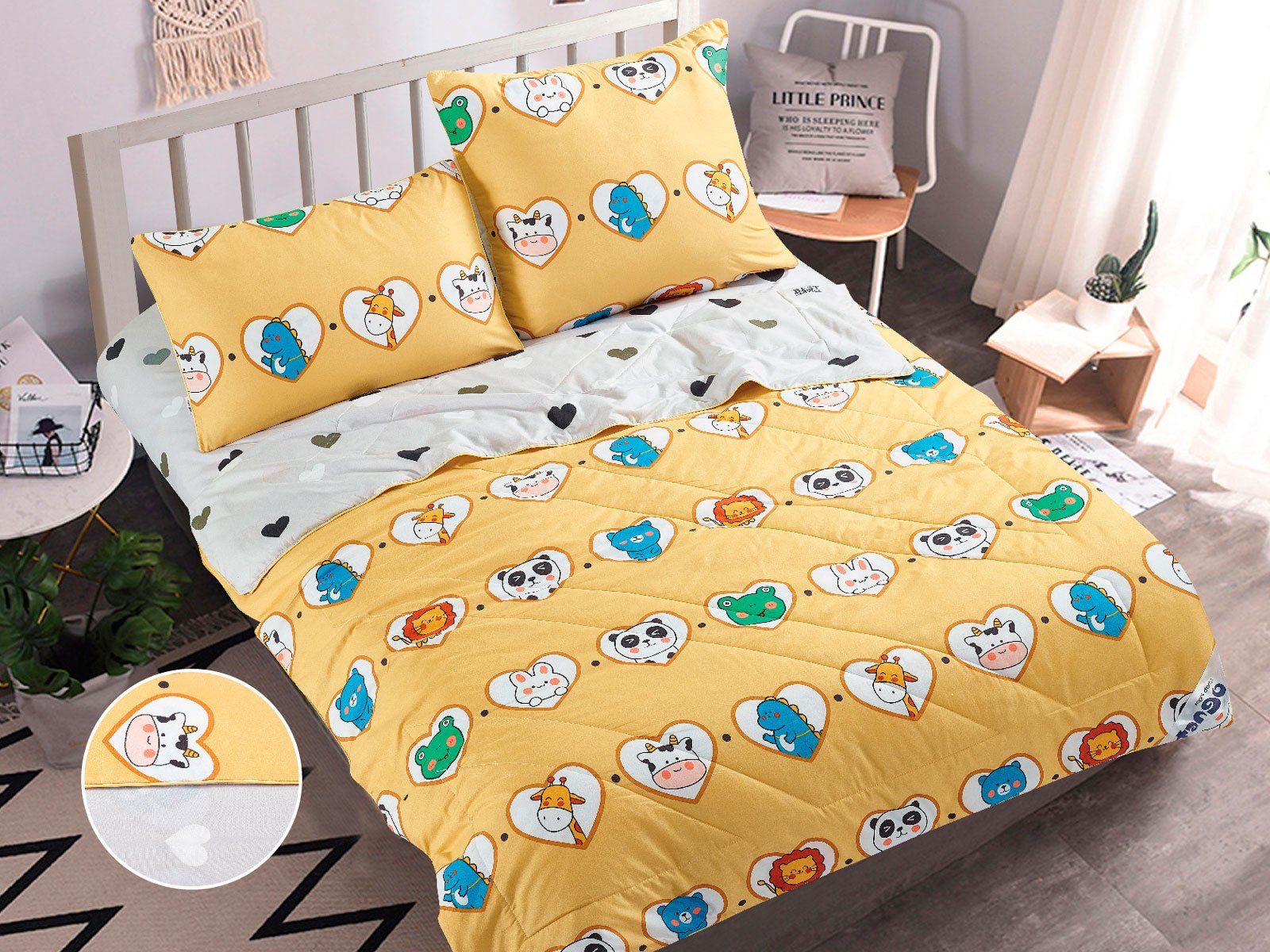 В данный комплект вместо пододеяльника входит облегченное одеяло. Комплект подойдет тем, кто устал от мучительного натягивания пододеяльников на одеяло.